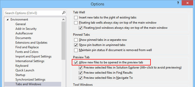 By default, Visual Assist opens files in the preview tab of the IDE, if the appropriate option is enabled in the options dialog of the IDE.
